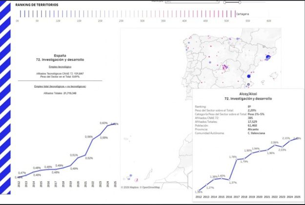 Alcoy es la octava ciudad española de más de 50.000 habitantes con mayor peso del empleo tecnológico