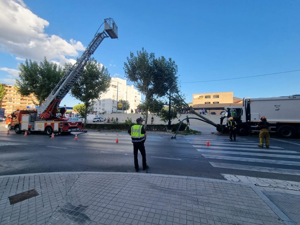 16 septiembre, 2022Ayer por la tarde tuvo lugar un accidente de tráfico en la Calle Valencia a la altura del supermercado Lidl. Una supuesta indisposición del conductor ha sido la causa de que el camión se estrellase contra un semáforo y un árbol provocando una gran retención. El conductor que resulto herido leve fue trasladado al Hospital.