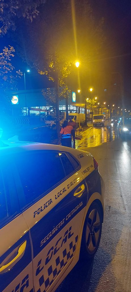 Efectivos de la Policía Local de Alcoy se trasladaron rápidamente al lugar de los hechos donde además de dar el soporte habitual estuvieron reglando el trafico hasta que los semáforos volvieron a funcionar.
