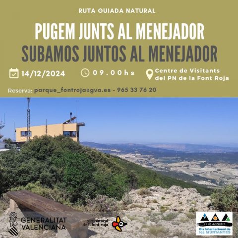 7 diciembre, 2024Nueva actividad de promoción: Subamos juntos al Menejador Excursión guiada para celebrar el Día Internacional de la Montañas, reconociendo la importancia de las cumbres más destacadas del Carrascal de la Font Roja y la comarca. Os invitamos a realizar esta singular marcha para subir a la cumbre del Menejador ¡Anímate y ven!