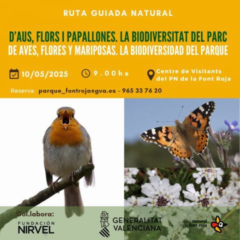26 abril, 2025Activitat de promoció: D’aus, flors i papallones. La biodiversitat del Parc. Aprofitant que al mes de maig es celebren el Dia Europeu dels Parcs Naturals, el Dia Internacional de la Diversitat Biològica i el Global Big Day, realitzem un itinerari per observar la biodiversitat del Parc Natural de la Font Roja. Sabrem quines són les espècies, tant de flora com de fauna, que composen esta rica biodiversitat que caracteritza a este espai natural.