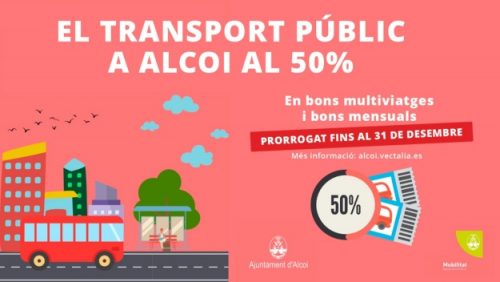 - L’Ajuntament d’Alcoi continuarà aplicant un descompte del 50% en els bons multiviatges i els bons mensuals de l’autobús urbà fins al pròxim 31 de desembre.
