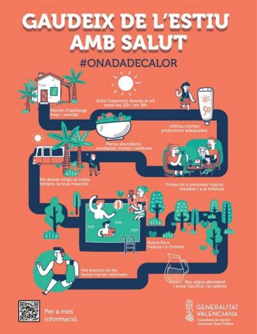 Com a mesures de prevenció, des del departament de Salut Pública es recomana beure líquids amb freqüència però evitar les begudes alcohòliques, molt ensucrades o amb cafeïna. Cal passar el major temps possible en llocs frescos i reduir l’activitat física o l’esport en les hores centrals del dia, a més d’utilitzar roba lleugera, mantindre les medicines en un lloc fresc i no realitzar menjars copiosos.