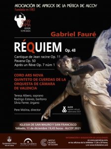 8 diciembre, 2021La fuerza emotiva del Réquiem en re menor op. 48 de Gabriel Fauré hace de esta obra, sin duda, una pieza única. El compositor es capaz de despertar en el oyente desde el miedo y el temor, hasta la solemnidad y la complacencia hacia la feliz redención de las almas. El concierto tendrá lugar el próximo sábado 11 de diciembre a las 19:45 h. en la Iglesia de San Mauro y San Francisco, una excelente apuesta de la Asociación de los Amigos de la Música de Alcoy.