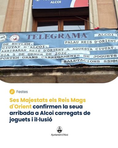 4 enero, 2026La ciudad de Alcoy ya respira ilusión y magia tras recibir el telegrama oficial procedente de Belén, en el que se anuncia que Sus Majestades los Reyes Magos de Oriente ya están de camino hacia la ciudad.