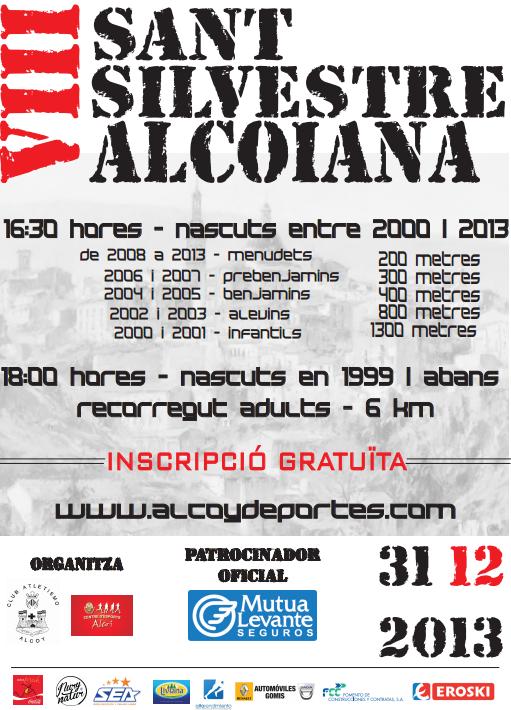 5 diciembre, 2013Ya está abierto el plazo de inscripción para la «VIII Sant Silvestre Alcoiana» que se celebrará el 31 de Diciembre de 2013. La inscripción se podrá realizar hasta el día 22 de Diciembre a través de este enlace y como el año pasado, será gratuita.