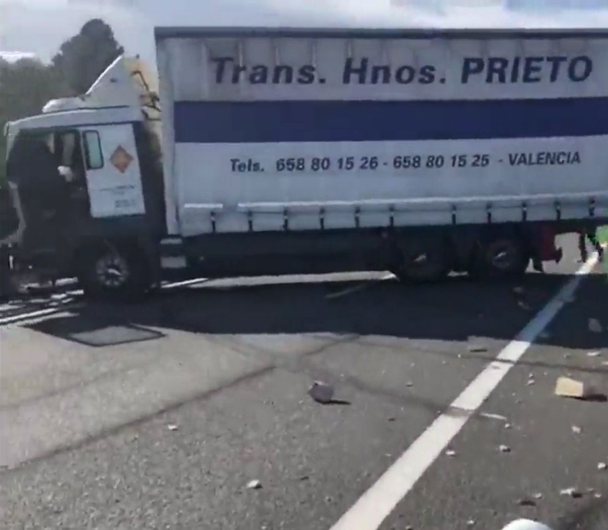 UN CAMIÓN SE CHOCA CONTRA UN QUITAMIEDOS DE LA A-7 CUANDO CIRCULABA POR LA ALCUDIA DEBIDO AL VIENTO