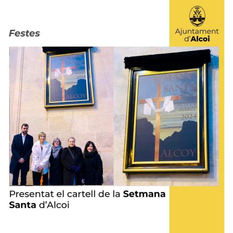 10 marzo, 2024Ahir van tindre lloc els primers actes de la Setmana Santa d’Alcoi, que va començar amb la benedicció i inauguració de la matraca del campanar de Santa Maria, va continuar amb la col·locació del cartell anunciador, obra de María Bolufer i la lectura del pregó, a càrrec d’Agustín Tárraga.Setmana_Santa_Alcoi_2024_val