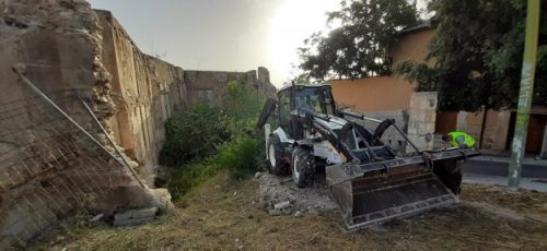 L’àrea d’actuació d’aquest projecte s’inclou dins del conjunt declarat Històric Artístic i és Bé d’Interés Cultural. Està situada en uns solars en els números 101 i 103 del carrer Verge Maria, per la qual cosa es troba dins del perímetre de protecció del centre històric, segons el vigent PGOU de 1989.Es tracta d’un espai complex on conflueixen alhora diversos elements patrimonials. D’una part, les restes d’un tram de muralla i torre-portal de la qual fora muralla de la Vila d’Alcoi en l’època medieval cristiana (s. XIII i XIV); d’altra banda, part de llenç de la muralla vinculada a la Guerra del Francés (1809) localitzada en el front nord-est i part dels murs que conformaven el pas interior de la porta d’ingrés a la ciutat (front sud-est); i finalment, la façana posterior de les edificacions residencials alçades en el XIX i XX, que dona al carrer Fraga (front nord-oest).La intervenció consisteix en el condicionament de tota la zona i la consolidació del conjunt de plataformes, murs de contenció i tancaments. També s’intervindrà en els murs històrics i en les restes de muralla i la barbacana del segle XIII. Finalment, es preveu millorar tota la fusteria i la serralleria, així com la instal·lació de panells i d’un nou sistema de drenatge i d’il·luminació.