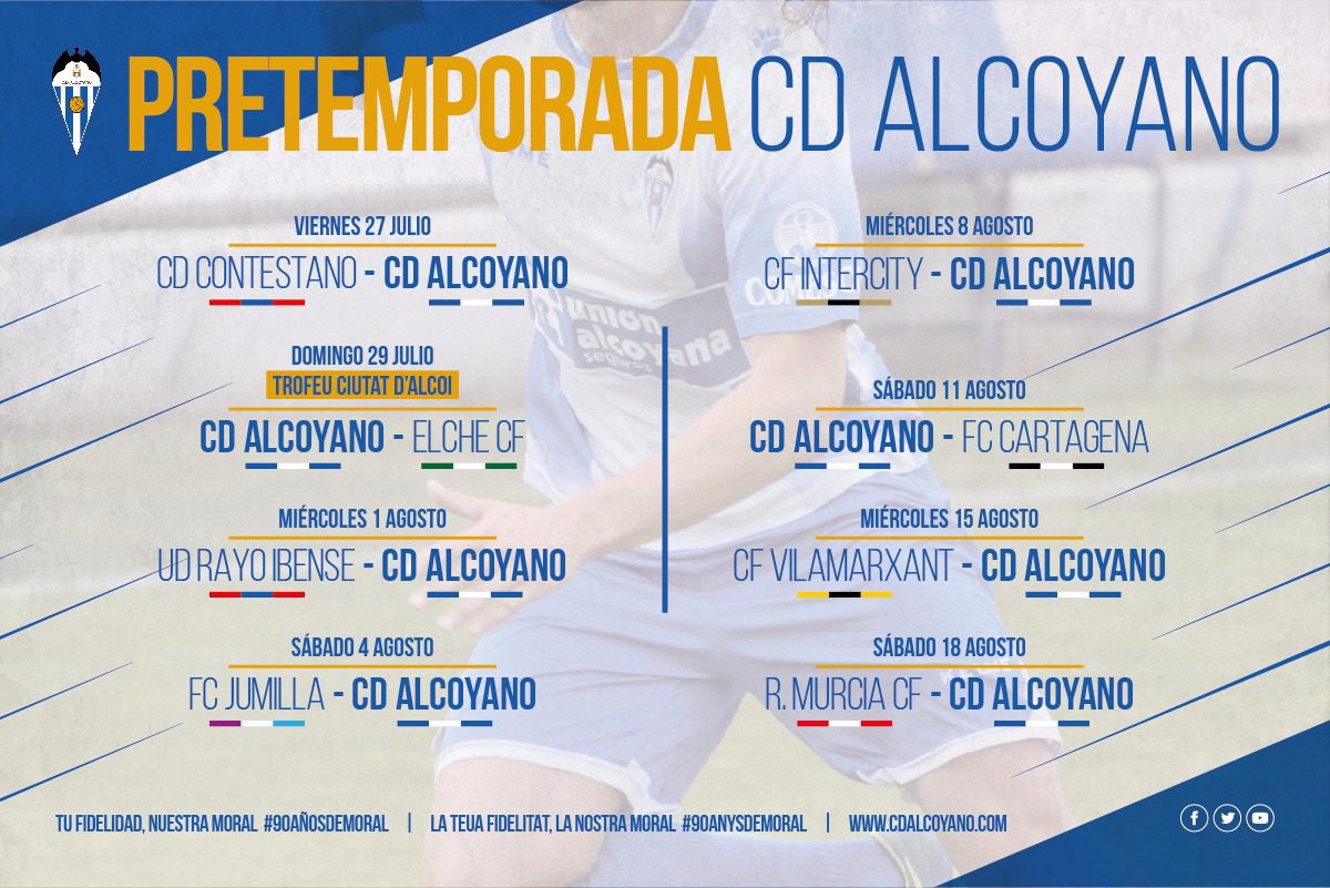 En la siguiente imagen puedes consultar todos los partidos de preparación que jugará el CD Alcoyano a lo largo de los meses de Julio y Agosto. Estos encuentros pueden estar sujetos a modificaciones y los horarios se irán confirmando en el transcurso de los días.