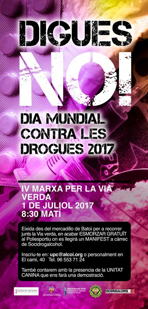30 junio, 2017 30 junio, 2017Categorías LOCALCELEBRACIÓN DEL DÍA MUNDIAL CONTRA LAS DROGASEste sábado 01 de Julio tendrá lugar la IV Marcha por la Vía Verde «Digues No!», Dentro de la celebración del Día Mundial contra las […]