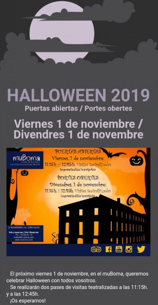 28 octubre, 2019 28 octubre, 2019Categorías OCIOHALLOWEEN 2019 EN EL MUBOMAEl próximo viernes 1 de noviembre, en el muBoma, queremos celebrar Halloween con todos vosotros. Se realizarán dos pases de visitas teatralizadas a las 11:15h. […]