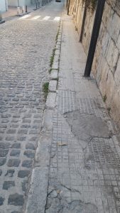 - La concejala afirma que “la acera de la calle San Mateo que pasa por delante de la Glorieta y que está enfrente de la acera “dels pilonets” está muy deteriorada”.