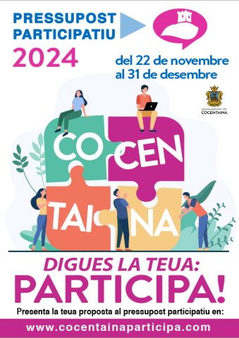 L’Ajuntament de Cocentaina acaba de posar en marxa el procés per a presentar projectes per als pressupostos participatius del 2024. Enguany, el termini es tancarà el 31 de desembre, de manera que els informes de viabilitat puguen ser redactats en gener i votar a finals de febrer, després d’un període d’al·legacions.