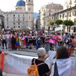 Hay otras imagenes de la concentración y lectura de Manifiesto en la plaza de España para conmemorar el día Internacional del Orgullo LGTBI+. Con este acto se cierra una programación que empezó el pasado 15 de mayo.