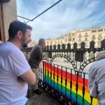 29 junio, 2023La plaça d’Espanya ha acogido esta tarde a las 19.30 horas la Concentración con motivo del Día Internacional del Orgullo LGTBI+. En las imagenes se puede ver al alcalde de Alcoy, Toni Francés y el vicealcalde y regidor de Igualdad, Àlex Cerradelo, acompañados por otros regidores y regidoras del Gobierno y la Corporación Municipal, acaban de hacer una recepción a las asociaciones Lgtbi+ de la ciudad, a continuación han colocado la bandera en el balcón de su despacho en el día Internacional del Orgullo LGTBI+.
