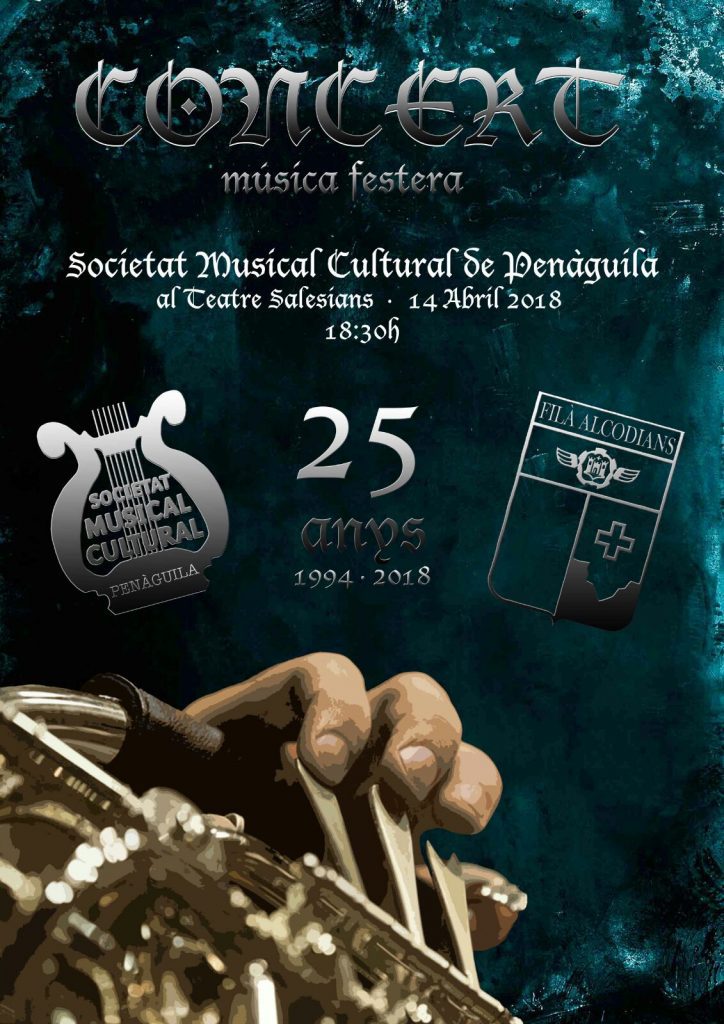 12 abril, 2018El Teatro Salesianos acogerá un concierto de música festera para celebrar que la Sociedad Musical Cultural de Penàguila cumple 25 años como banda oficial de la Fila Alcodianos. Este acto se celebrará este próximo Sábado 14 de Abril a partir de las 18:30 horas. Al finalizar el concierto habrá un vino de honor en los locales de la Sociedad de Antiguos Alumnos de los Salesianos. La entrada para el público en general será totalmente gratuita, hasta completar el aforo.