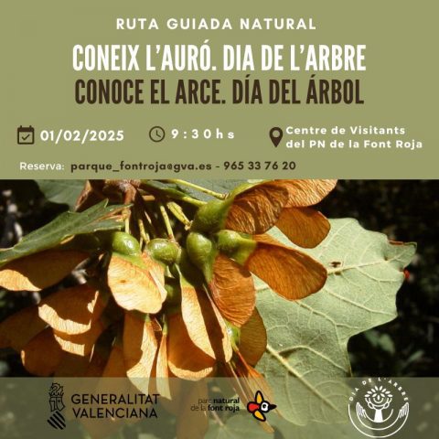 27 enero, 2025Conoce el arce., una nueva actividad de promoción para celebrar el Día del Árbol, constará de una visita al vivero forestal de la Font Roja para conocer el funcionamiento y la labor que desempeña. Una ruta guiada para conocer la ecología y singularidad del arce (Acer granatense) en el bosque mediterráneo.