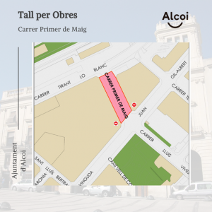 El Ayuntamiento de Alcoy informa de que la calle Primer de Maig estará cortada desde el miércoles, 4 de agosto a las 07:00 horas y hasta el jueves, 5 de agosto a las 20:00 horas debido a las obras para adecuar y mejorar el entorno de la estación de Renfe. Estos trabajos están incluidos en la Estrategia de Desarrollo Urbano Sostenible Integrado (EDUSI) Alcoidemà, cofinanciada con fondos FEDER de la Unión Europea.
