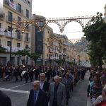 18 abril, 2017En la noche de ayer, aproximadamente a las 20:00 horas, sobre un centenar de personas (festeros y devotos de San Jorge) junto al Sant Jordiet Tomás Pascual Canto trasladaron la imagen de “El Xicotet” desde su templo hasta la Parroquia de Santa María recorriendo varias calles del centro histórico de Alcoy, en la que intervinieron las diferentes bandas de música alcoyanas.