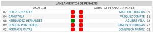 En la tanda de penaltis, los protagonistas han sido los porteros y solo Hernandez ha logrado marcar el tercer penalti del Alcodiam y con el llevarse el partido. La eliminatoria seguirá y se disputará el segundo partido en Girona.