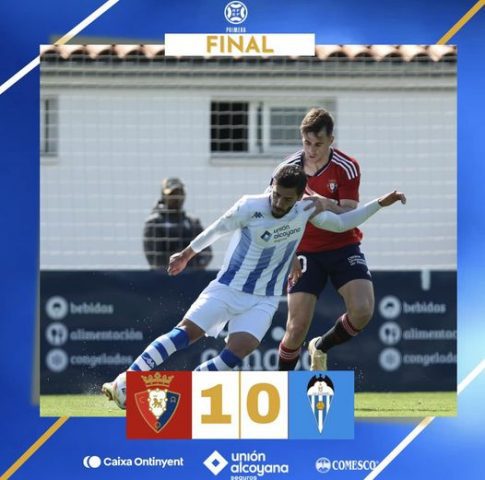 27 marzo, 2023Empezaba el partido cuesta arriba cuando en el minuto 6 el arbitro señala un pelati a favor del Osasuna B por empujón de Lillo a Barbero que hq transformado subiendo el 1-0 al marcador. Este sería el resultado definitivo ya que aunque el Alcoyano ha intentado reaccionar consiguiendo marcar Armental, el gol ha sido anulado por fuera de juego. El Deportivo lo seguía intentado y Moyita casi consigue el empate sobre los 30 minutos de juego en u nremate de cabeza y posteriormente otra vez en el minuto 45.