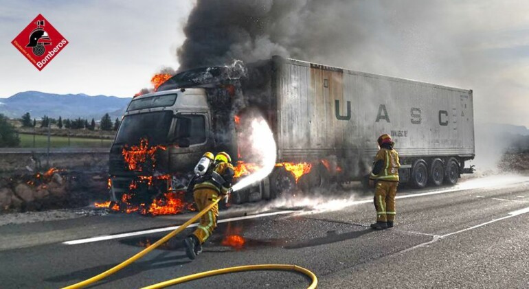 EL INCENDIO EN LA CABINA DE UN CAMIÓN CAUSA RETENCIONES EN LA AUTOVÍA ENTRE SAX Y VILLENA