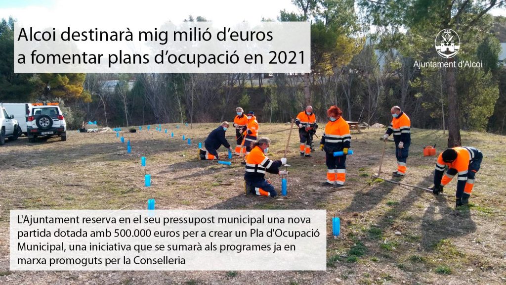 16 febrero, 2021El Ayuntamiento reserva en su presupuesto municipal una nueva partida dotada con 500.000 euros para crear un Plan de Empleo Municipal, una iniciativa que se sumará a los programas ya en marcha promovidos por la Conselleria
