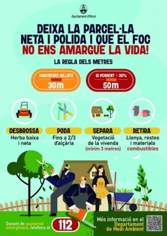 Estas recomendaciones para el ámbito privado complementan el trabajo exhaustivo que ya desarrolla la administración local para proteger el municipio. El Ayuntamiento de Alcoy trabaja continuamente en el desbroce y adecuación de los solares municipales a lo largo de todo el año. Además, como parte de una campaña especial realizada entre los meses de mayo y octubre, se limpiaron de manera integral 109 espacios públicos repartidos por diferentes zonas de la ciudad. Para facilitar el cumplimiento de la legislación vigente, el consistorio recuerda que se puede consultar la guía metodológica autonómica en la web de la Conselleria de Medio Ambiente, así como el manual técnico específico con los condicionantes concretos para las zonas urbanizadas.
