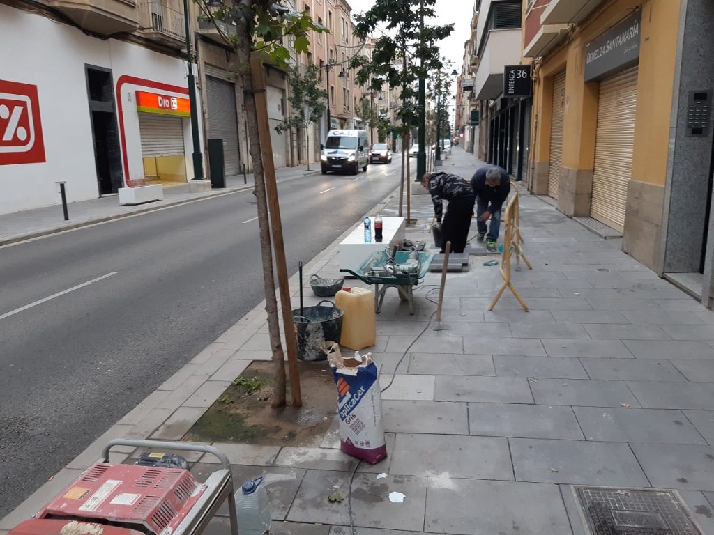 Entre los desperfectos que se solucionarán se han incluido unos árboles que se habían secado y hay que cambiar, unas arquetas de la calzada que se tenían que sustituir, el cambio de unas arquetas de la red y unas piezas del pavimento que estaban microfisuradas, Los técnicos han revisado también las piezas que se están colocando, si bien presentan un color diferente se ha constatado que se debe a que son nuevas y que en el tiempo y el uso se mimetizarán con el resto. Igualmente han fresado y repintado el paso de peatones del Mercat Sant Roc.