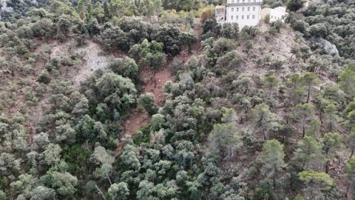 Ejecutaron los siguientes trabajos: banda de 5 metros de protección del edificio, eliminando toda la vegetación, excepto los ejemplares que se señalan por su singularidad. Seguidamente, realizaron una banda de desbroce de 12 metros, mesurados desde la banda anterior, consiguiendo una longitud de 17 metros desde la fachada del edificio o instalaciones. En este caso se han eliminado de manera prioritaria los árboles viejos, enfermos o muertos por el alto riesgo que suponen de ignición y propagación del fuego y los de menor diámetro en el caso de la encina. En el pinar, se han eliminado dentro de la zona de trabajo, íntegramente, excepto ejemplares que señalados por su singularidad. La vegetación herbácea anual y el matorral fue segada porque no supero los 5 cm de altura, únicamente se reservó el matorral noble o que indicó el director de las obras. Sobre los árboles que se han *mantés se ha hecho una poda de ramas bajas. Los desbroces se han llevado a cabo con desbrozadora manual.