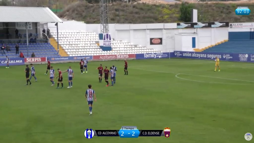 Tras los diferentes cambios de ambos técnicos, la igualada de los jugadores de Alcoy llegó en el tramo final del choque cuando el sajeño Ángel López logró batir por partida doble la portería del meta eldense en los minutos 85 y 88 para poner el definitivo empate a dos goles en el electrónico.