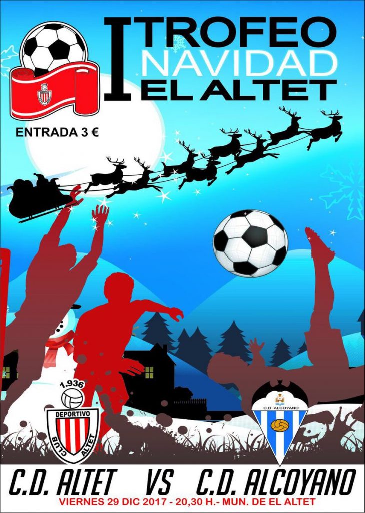 29 diciembre, 2017Tras la finalización de la primera vuelta de la liga de 2ª División B (Grupo III) que finalizó el Domingo 17 de Diciembre en El Collao frente al Ontinyent por fechas navideñas, el Club Deportivo Alcoyano disputará un amistoso frente al CD Altet esta noche 29 de Diciembre a partir de las 20:30 horas en el Campo Municipal de El Altet.