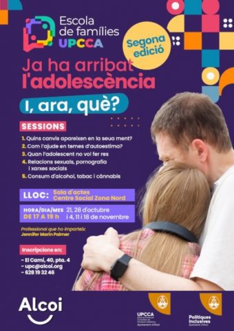 18 octubre, 2024Después del éxito de la primera edición, la Unidad de Prevención Comunitaria de Conductas Adictivas del Ayuntamiento de Alcoy ha organizado una nueva edición. La Unidad de Prevención Comunitaria de Conductas Adictivas del Ayuntamiento de Alcoy ha programado una segunda edición de la Escuela de familias después de la buena acogida que tuvo la primera edición, con 5 sesiones en los meses de octubre y noviembre.