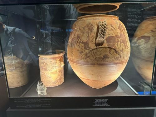 El Museo Arqueológico municipal Camilo Visedo de Alcoy ha prestado cuatro piezas de sus fondos arqueológicos, entre ellas el conocido como Vaso de los Guerreros de La Serreta, en la exposición temporal “Ciudades de luz: Akrá, Leuké, Lucentum y Laqant” que permanecerá abierta hasta mayo de 2025 en el MARQ (Museo Arqueológico Provincial de Alicante). La muestra fue inaugurada el pasado viernes 20 de diciembre y contó con la presencia del concejal de Patrimonio Cultural, Ignacio Trelis.