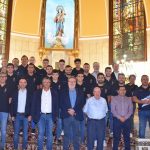 Tanto directiva, cuerpo técnico, jugadores, y cerca de cincuenta niños de la cantera, ofrecieron a la Virgen unas flores de mano de dos de los más pequeños, tras unas emotivas palabras del sacerdote Don Rigoberto, acompañados de autoridades de la Corporación Municipal.
