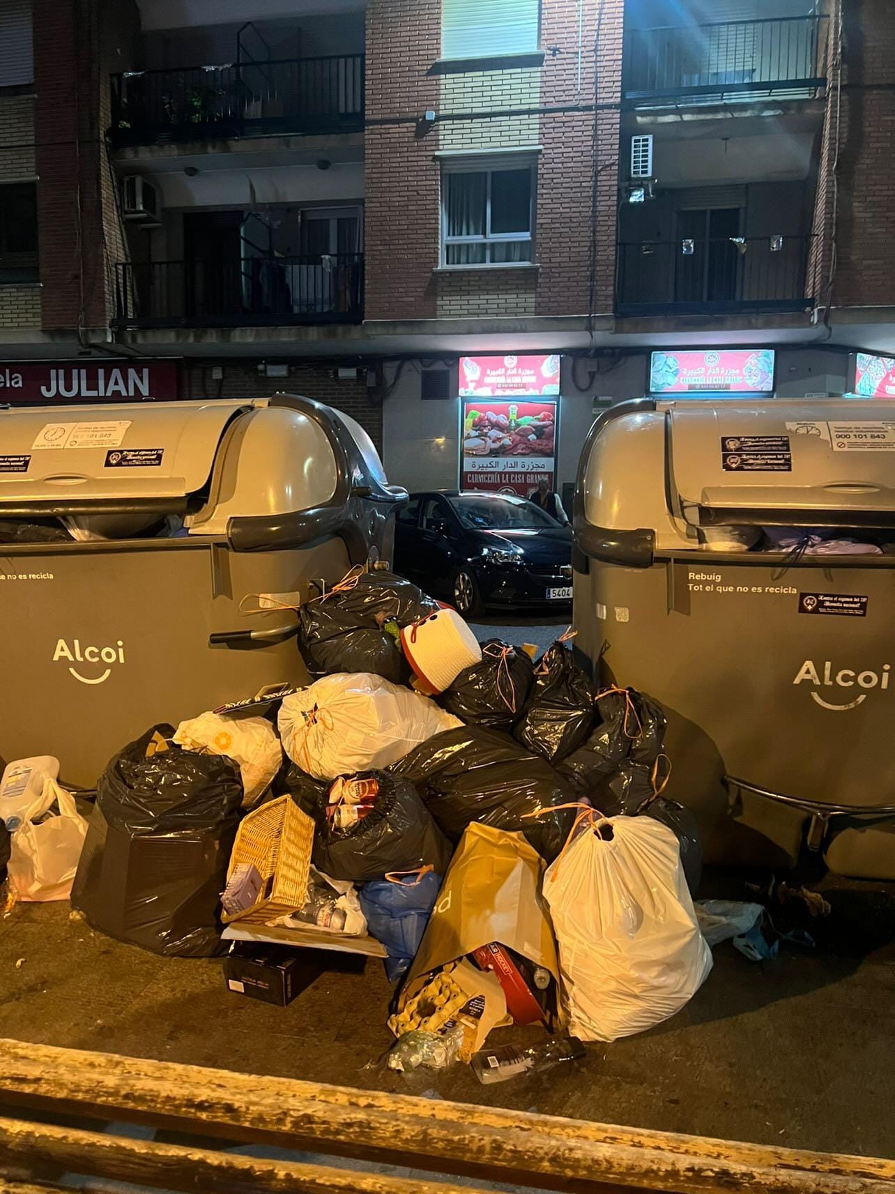 Este fin de semana, numerosos barrios de Alcoy se han visto afectados por la falta de limpieza y la ausencia del servicio de recogida de basura que ha provocado que los contenedores estuvieran rebosados, y que hubiera acumulaciones de basura y residuos durante todo el fin de semana. Una situación que ha generado una fuerte indignación entre los vecinos, quienes han tenido que convivir con la basura en la calle sin casi poder circular por las aceras.