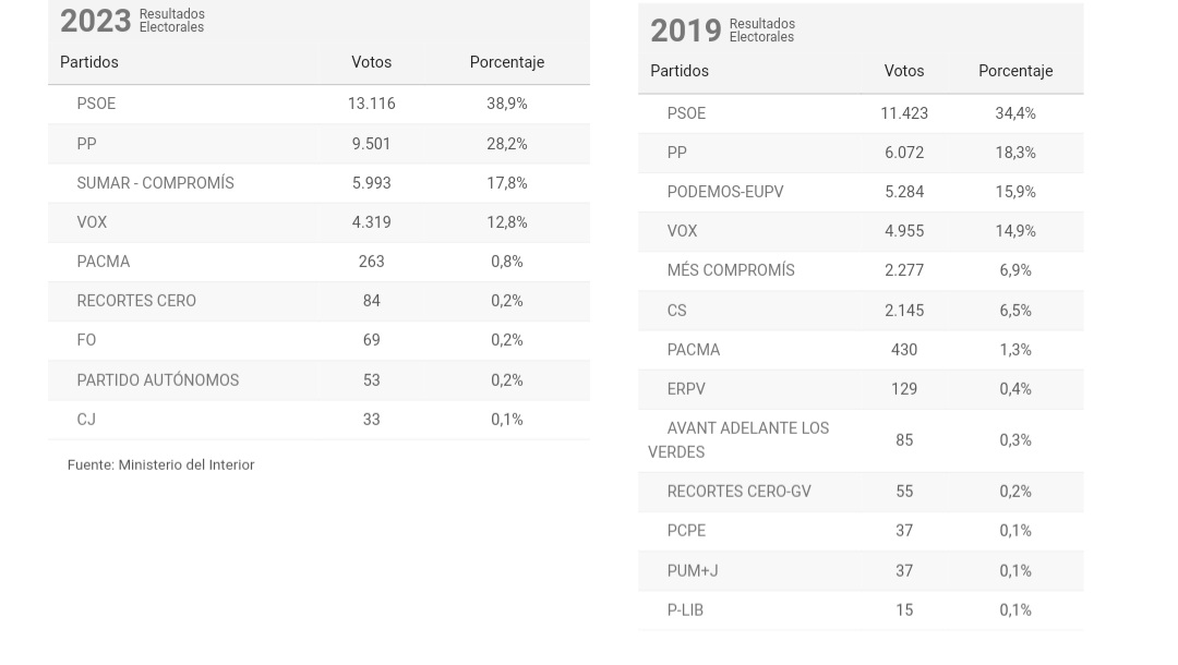 El Partido Popular gana 3.429 votos y remonta hasta los 9.501.