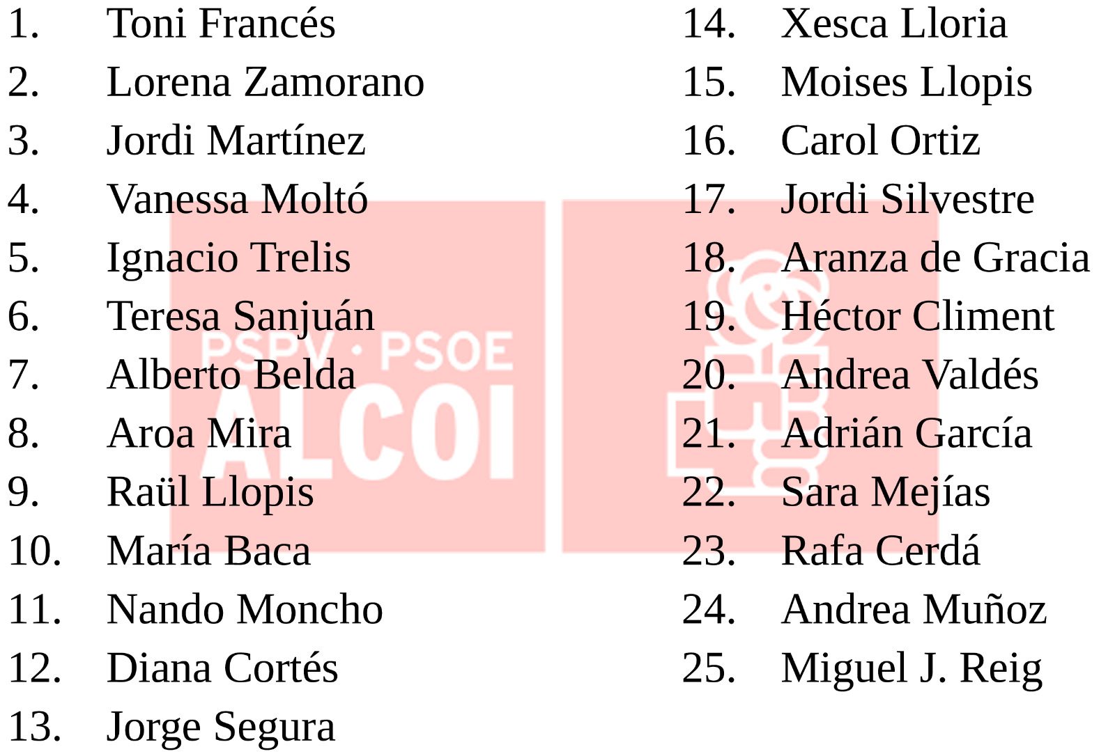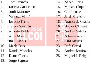 25 febrero, 2023Els Socialistes d’Alcoi ja tenim la llista per a les pròximes eleccions municipals. Una llista que conjuga gent amb experiència de gestió governant i persones amb una gran trajectòria i vàlua professional que se sumen al projecte, que no és només el projecte dels socialistes, és el projecte d’Alcoi.