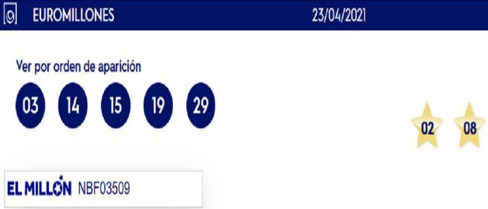 26 abril, 2021El sorteo del Euromillones de este Viernes 23 de Abril, dejó un nuevo millonario en España, tras acertar el código El Millón, y el cual fue validado en un despacho receptor de Orihuela (Alicante).