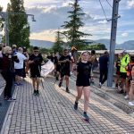 La antorcha del #Esport3D sale del Ayuntamiento hacia el Polideportivo Francisco Laporta. La sección de marcha nórdica del Centre Exursionista d’Alcoi lleva la antorcha y Club Atletisme Alcoi la bandera.
