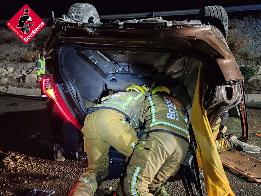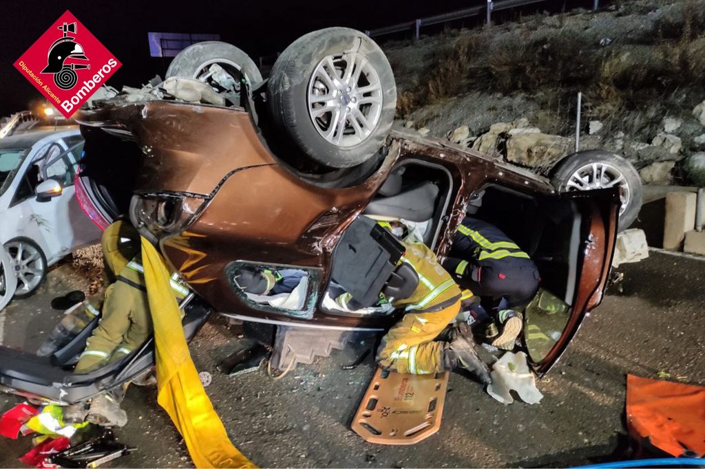 7 febrero, 2022Durante la madrugada del sábado se produjo un accidente de tráfico en la autovÍa A-7 sentido Alcoy hacia Alicante. Dos vehículos se vieron implicados y se salieron de la autovía acabando en la carretera de servicio. Un conductor se quedí atrapado al que integrantes del Consorcio Provincial de Bomberos de Alicante lograron excarcelar.