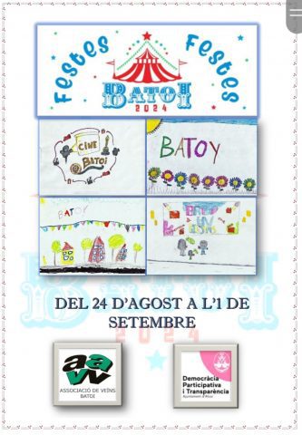 25 agosto, 2024Hoy empiezan un año más, las fiestas del barrio de Batoy con un gran número de actos que seguro que tendrán mucho asistencia. Habrá concurso de paellas, de cartas, buñolada, petanca, vuelta en bici, noche de cine, el Batoi-Rock o hasta gimncana zombi o autos locos entre otras actividades.Programa 2024 (valenciá)