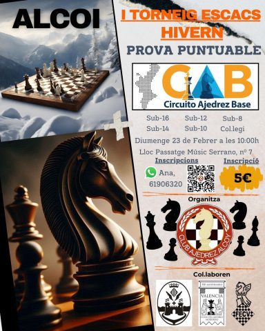 A FOSQUES MARXA 202517 febrero, 2025Nirvel Beauty Group recibe la visita de la Consellera de Innovación, Industria, Comercio y Turismo18 febrero, 2025 I Torneig d’ Escacs organitzat pel Club Ajedrez Alcoi 17 febrero, 2025 Categorías DEPORTES Etiquetas AjedrezCLUB AJEDREZ ALCOY Aquest proper diumenge tendrá lloc el I Torneig d’ Escacs organitzat pel Club Ajedrez Alcoi amb la col.laboració de la Regidoria d’Esports i la Federació Valenciana d’ Escacs. Compartir Artículos relacionados6 octubre, 2025Más de 500 personas inician los cursos de natación en el Complejo Deportivo Municipal Eduardo LatorreLeer más28 septiembre, 2025El Alcoyano cae con nueve jugadores y sufre una dura goleada ante el Castellón B en El CollaoLeer más Deja una respuesta Cancelar la respuestaTu dirección de correo electrónico no será publicada. Los campos obligatorios están marcados con *Comentario * Nombre * Correo electrónico * Web Guarda mi nombre, correo electrónico y web en este navegador para la próxima vez que comente. Δ