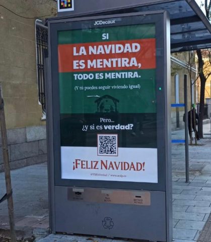 La campaña marca, además, el cuarto año consecutivo que la ACdP felicita la Navidad en las calles, con campañas de marquesinas para recordar el sentido originario y auténtico de las fiestas. En diciembre de 2020, lo hizo en forma de pregunta –“¿Sabes cuál es el bulo más repetido en los últimos 2.000 años? Dios no existe”-, y en 2021 publicó un anti-anuncio navideño para transmitir un mensaje provocador: “Solo un nacimiento ha cambiado el rumbo de la historia. Y no es el tuyo”.