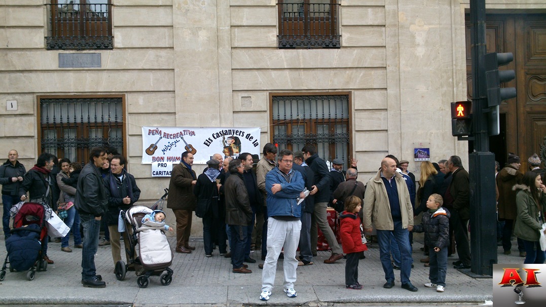 25 diciembre, 2013Hoy ha tenido lugar junto al Ayuntamiento de Alcoy, la visita de «La Castañera 2013». Esta campaña realizada en favor de Cáritas por varios componentes de la Peña Bonhumor, ha sido un éxito y la han visitado muchos viandantes. Tanto ha sido que en principio iban a estar en de 10.00 a 13.00 horas pero han ampliado el horario antes la afluencia de personal.