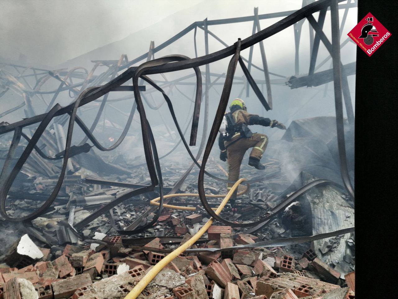 EFECTIVOS DE LOS BOMBEROS ESTABILIZAN UN INCENDIO CON PEQUEÑAS EXPLOSIONES EN LA FÁBRICA DE TURRONES DE LA JIJONENCA