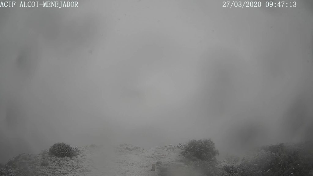 28 marzo, 2020Segons es pot veure a la càmera de l’Agrupació ACIF que té instal·lada al cim del Menejador, la neu está cuallant aquest mati a una cota de 1356 metres amb una temperatura de 0ºC.