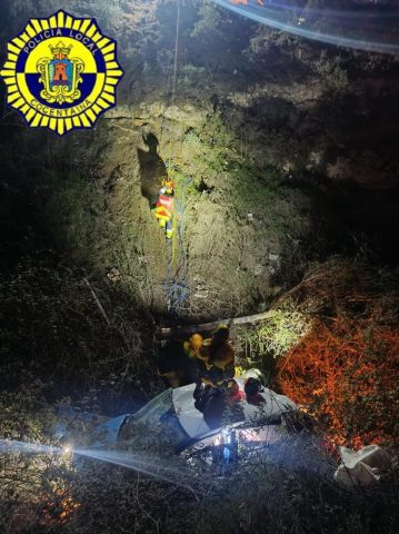 La Policía Local de Cocentaina protagonizó un nuevo acto heroico durante la madrugada de hoy al rescatar a una mujer que había quedado atrapada en su vehículo tras precipitarse por un barranco de unos 20 metros de altura en las inmediaciones del polígono industrial «La Llaona», junto a la carretera Nacional 340.