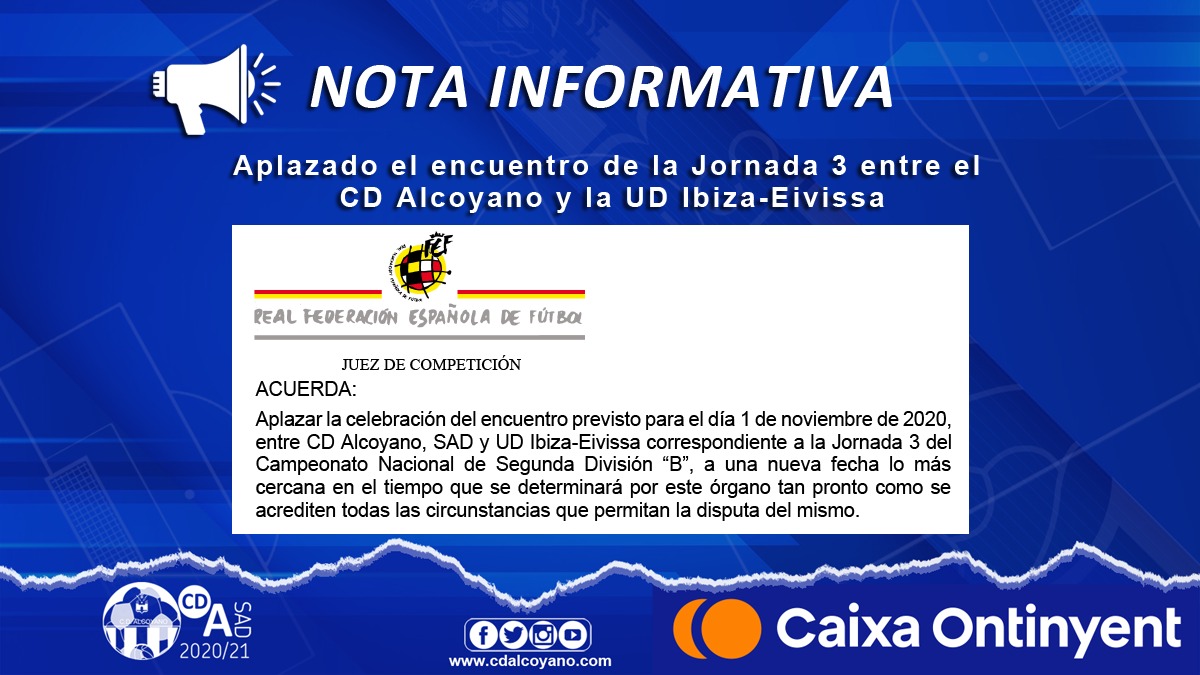 Nota Informativa Aplazamiento CD Alcoyano UD Ibiza
